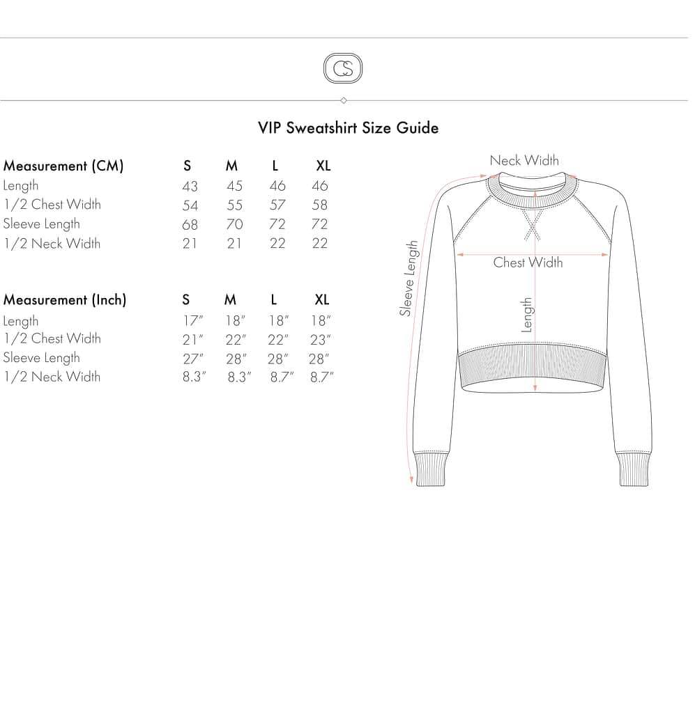 The VIP Sweatshirt is exactly what you would want to wear on your weekend getaway or flight to your preferred destination. It is one of our comfiest pieces that will make you feel cosy and relaxed. The sweatshirt is slightly cropped and has a wider lower part for an even more enjoyable fit. The fit is quite relaxed, but the sleeves are fitted at the wrists. Wear it as a set with our VIP pants or with any other pants of your choice, and it will look effortlessly classy and put together in either case.